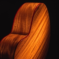 The LJMC is a completley handmade large jumbo with solid mahoganey back and sides and solid cedar top. It has padauk binding with an 'armrest feature on the top upper bout and inside Florentine cutaway.